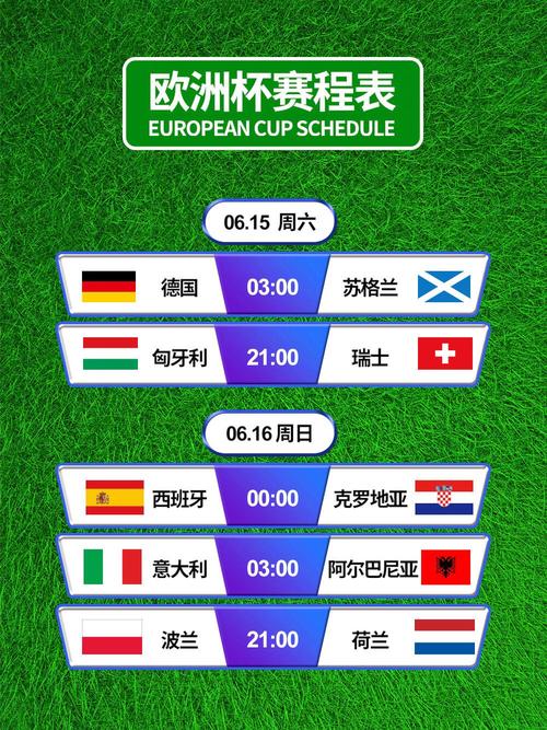 欧洲杯2021的赛事时间表安排得非常紧凑,从6月11日到7月11日,共计29场比赛。以下是赛事时间表的关键信息: