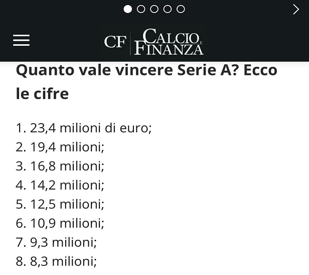 比赛收入是意甲俱乐部收入的主要来源。在19-20赛季,比赛收入按照以下方式进行分配: