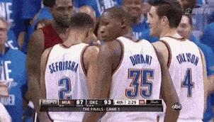 3.杜兰特关键时刻发挥神勇:在比赛最后关头,杜兰特连续得分,帮助雷霆队将比分缩小。
