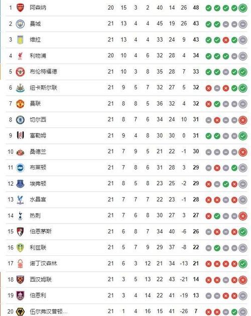 2021年11月的英超联赛精彩纷呈,各队为了争夺积分榜前列的位置,展开了一场场激烈的角逐。以上是对英超最新比分及积分榜的详细解析,希望对您了解英超赛事有所帮助。