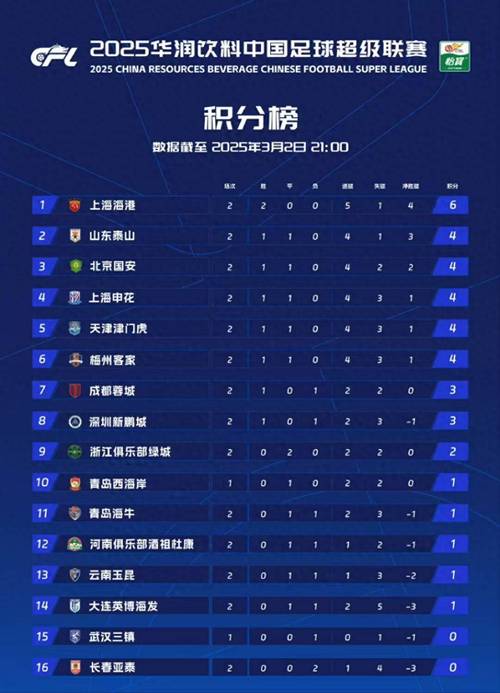 中超积分最新排名展现了新赛季的激烈竞争,强队领跑,弱队逆袭,球员表现精彩。在新赛季的征程中,我们期待更多精彩瞬间,见证中超联赛的辉煌。
